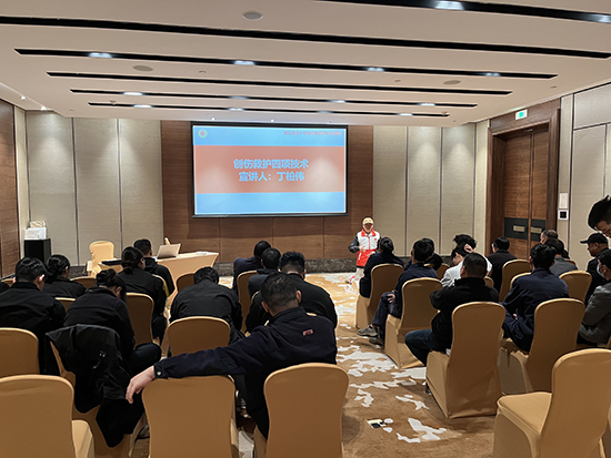 考慮到酒店崗位特性,培訓(xùn)特別加入場(chǎng)景化演練環(huán)節(jié)。針對(duì)工程部員工日常作業(yè)可能面臨的器械劃傷、磕碰等情況,以及前廳部員工接待賓客時(shí)可能遇到的客人意外跌倒、擦傷等突發(fā)場(chǎng)景,丁柏偉老師現(xiàn)場(chǎng)模擬真實(shí)情境,指導(dǎo)員工如何規(guī)范操作救護(hù)流程,確保在緊急時(shí)刻能“懂急救、會(huì)操作、敢處置”,將理論知識(shí)轉(zhuǎn)化為實(shí)戰(zhàn)能力。