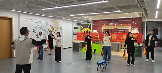 培訓結束后,參訓學員張文學阿姨說:“用英語講《余村故事》快板,感覺真是很新奇!而且還有絕影機器狗的參與,感覺很有勁!”“是??!特別是今天這個藝術老師的專業培訓讓我們的雙語快板更有型了!”學員周夏斌接著說道。