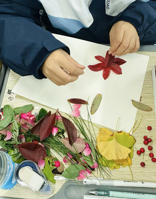 同學們俯身拾起的,不只是一片葉子,更是一個個獨一無二的秋天。他們將這份秋信帶回教室,開始了一場安靜的創造。