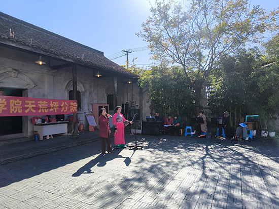 11月19日,天荒坪鎮馬吉村粟裕紀念館門前操場化作紅色文化舞臺。安吉社區教育學院天荒坪分院(天荒坪成校)老年歌詠班全體學員自發組織學期成果展演,以“紅歌+舞蹈”形式獻上20個節目。天荒坪成校校長汪華忠、馬吉村村委領導全程觀摩,村婦女主任陳凌飛擔任主持,吸引百余名村民駐足。