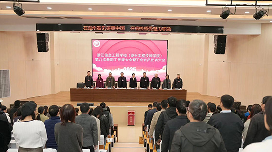 在雄壯的國際歌聲中,浙江信息工程學(xué)校(湖州工程技術(shù)學(xué)院)第八次教職工代表大會暨工會會員代表大會圓滿完成各項(xiàng)議程,勝利閉幕。(浙江信息工程學(xué)校)