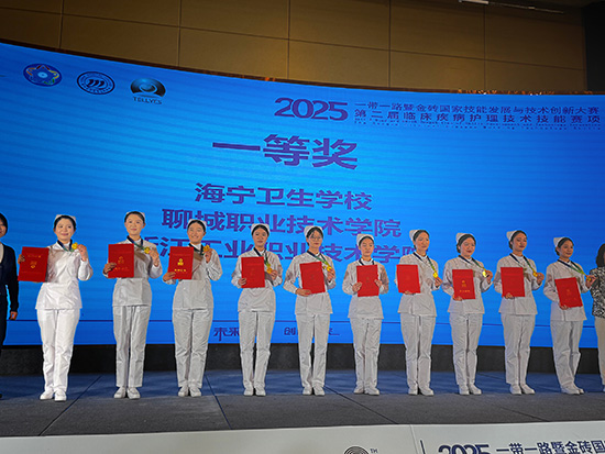 捷報(bào)頻傳,碩果相繼!繼海寧衛(wèi)生學(xué)校學(xué)子在2025年世界職業(yè)院校技能大賽康復(fù)治療與護(hù)理賽道斬獲金獎(jiǎng)并歷史性晉級冠軍總決賽之后,海寧衛(wèi)校(海寧市綜合高級中學(xué))再創(chuàng)佳績。在11月20日至23日于河南漯河醫(yī)學(xué)高等專科學(xué)校舉辦的“2025‘一帶一路’暨金磚國家技能發(fā)展與技術(shù)創(chuàng)新大賽之第二屆臨床疾病護(hù)理技術(shù)技能賽項(xiàng)”中,學(xué)校代表隊(duì)從全國49支中高職優(yōu)秀隊(duì)伍中脫穎而出,再獲一等獎(jiǎng)殊榮,續(xù)寫了“以賽促教”的輝煌篇章。