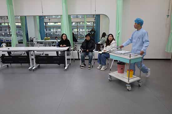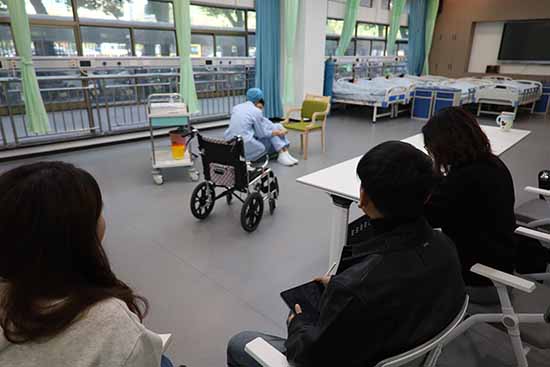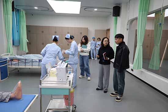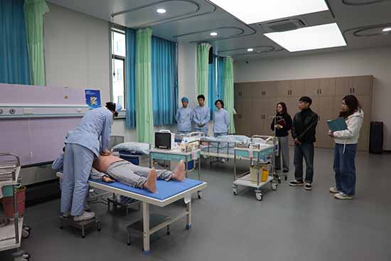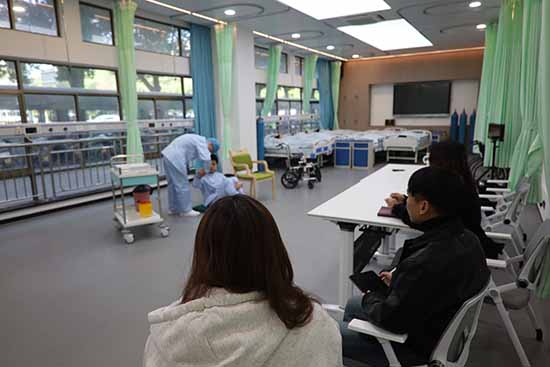 在陳杰校長(zhǎng)的陪同下,徐飛波校長(zhǎng)一行首先參觀了護(hù)理實(shí)訓(xùn)基地。護(hù)理實(shí)訓(xùn)基地則以其高度仿真的臨床環(huán)境、完善的實(shí)訓(xùn)設(shè)備和規(guī)范的教學(xué)流程,給來(lái)訪嘉賓留下了深刻印象。寧波第三技工學(xué)校的護(hù)理教師還深入到海寧衛(wèi)生學(xué)校(海寧市綜合高級(jí)中學(xué))護(hù)理備賽團(tuán)隊(duì),觀摩學(xué)生備賽演練。