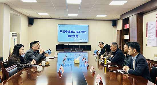 11月25日上午,寧波第三技工學(xué)校黨支部書記兼校長(zhǎng)徐飛波一行5人來(lái)到海寧衛(wèi)生學(xué)校(海寧市綜合高級(jí)中學(xué))開展交流活動(dòng)。海寧衛(wèi)生學(xué)校黨總支書記顧忠強(qiáng)、校長(zhǎng)陳杰、副校長(zhǎng)沈孝麗等領(lǐng)導(dǎo)熱情接待并陪同交流。