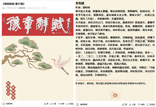 2024年6月,駢文《天牝賦》發(fā)表于《豫章辭賦》;