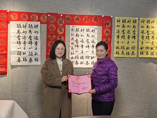 結(jié)業(yè)之際,學(xué)員們紛紛展示學(xué)習(xí)成果,一幅幅字跡工整、韻味初顯的書法作品,既是兩個月勤學(xué)苦練的見證,也彰顯著大家對書法藝術(shù)的熱愛。大家表示,通過課程不僅掌握了書法基礎(chǔ)技能,更領(lǐng)略了漢字文化的博大精深,收獲頗豐。頒獎環(huán)節(jié)里,老年學(xué)堂負責(zé)人為優(yōu)秀學(xué)員們遞上榮譽證書與精心準備的小禮物,手中的紅本本映著大家眼里的笑意,也藏著對這段習(xí)字時光的珍視。