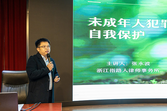 浙江指路人律師事務所主任張永波深耕法律領域十余載,此次他聚焦“未成年犯罪的預防與自我保護”主題,用詳實的案例、通俗的語言展開宣講,還與現場學生積極互動,進一步筑牢了未成年人的法律保護意識。