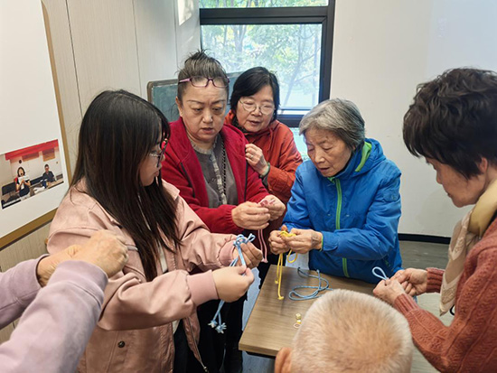 而作為傳統(tǒng)非遺技藝為基礎(chǔ)的竹編課程則簡(jiǎn)化設(shè)計(jì)適合親子共學(xué)的編結(jié)技法編成團(tuán)扇;藤編課程完成“柿柿如意”柿子和玫瑰既美好又寓意吉祥;繩編課程創(chuàng)新采用傘繩編織技術(shù),配以晶瑩的星星吊墜,讓參與家庭在繩結(jié)交錯(cuò)間編織出這個(gè)冬天最閃亮的記憶。在編織過(guò)程中居民們體驗(yàn)化平凡為神奇的手作樂(lè)趣,提升家庭協(xié)作與空間美感營(yíng)造能力。