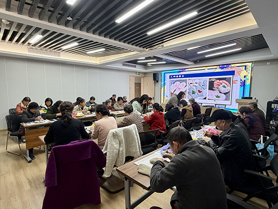 家住杜鵑小區的王阿姨拿著戳針有些手生,戳了幾下羊毛還是松散的,急得皺起了眉頭,坐在她邊上的陳阿姨立馬手把手教她,“王大姐,您手腕稍微用力,戳針要垂直往下戳,這樣羊毛才能更緊實。”