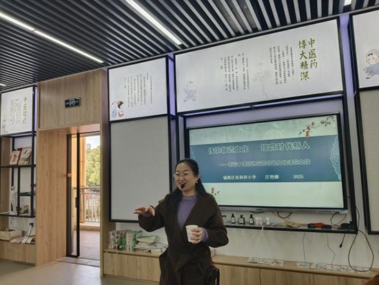 隨后,學員們走進鎮海區張和祥小學,在莊艷娜校長的帶領與講解下,沉浸式體驗了學校“祥和”教育的溫暖氛圍與中醫藥文化的獨特魅力。該校將中醫藥文化轉化為鮮活的教育資源,勞動教育的設計與實施更是別具匠心,給學員們留下了深刻印象。