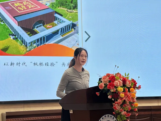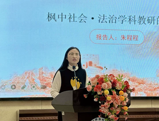 朱程程以《扎根“楓橋經(jīng)驗(yàn)”,深耕鄉(xiāng)土思政——楓中社會(huì)·法治學(xué)科教研的路徑探索與實(shí)踐成果》為題作報(bào)告。她以“楓橋經(jīng)驗(yàn)”為精神內(nèi)核與資源源頭,遵循“理論引導(dǎo)—實(shí)踐探索—文本凝練—成果輸出”的閉環(huán)路徑,系統(tǒng)推動(dòng)鄉(xiāng)土資源向立德樹(shù)人鮮活教材轉(zhuǎn)化。在此過(guò)程中,學(xué)生實(shí)現(xiàn)從“傾聽(tīng)者”到“擔(dān)當(dāng)踐行者”的成長(zhǎng),教師完成從“耕耘者”到“思想研究者”的蛻變,成功打通鄉(xiāng)土資源到育人成果的轉(zhuǎn)化通道。