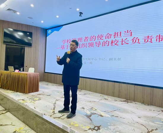 南京市秦淮區教師發展中心黨總支書記朱一峰以《學校管理者的使命擔當》為題,結合自身豐富的管理經驗,以風趣幽默的案例,深刻闡釋了在黨組織領導的校長負責制下,書記應具備的“黨性強、懂教育、會管理、有威信、善于做思想政治工作”等核心素質,引發了廣泛共鳴。