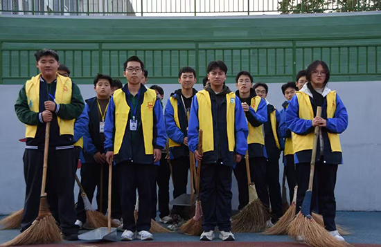 與此同時,運動場周邊的清掃工作也在有序進行。同學們分組清理跑道兩側的落葉、紙屑,仔細撿拾草叢中的塑料瓶、包裝袋等雜物。看臺座椅、欄桿、指示牌被擦拭得一塵不染。針對衛生死角,同學們不怕臟、不怕累,用工具徹底清理。陽光下,同學們忙碌的身影成為校園一道靚麗的風景線。