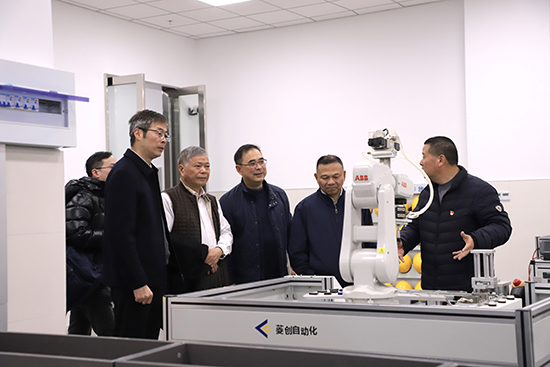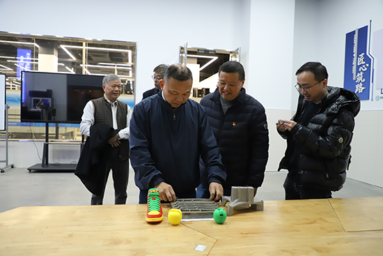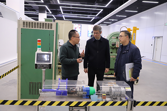 在學校黨委書記盧科、校長張武劍的陪同下,陳安平副主席、鄭堅江董事長一行參觀了校園,實地考察了智能制造和交通運維專業群實訓基地。參觀過程中,張武劍校長詳細介紹了學校的基本情況以及在專業建設方面的多年探索,并在學校現代化實訓設備前向來賓展示了金屬3D打印制作完成的“中國龍”作品、數控機床加工的精密零部件等學生實訓成果。