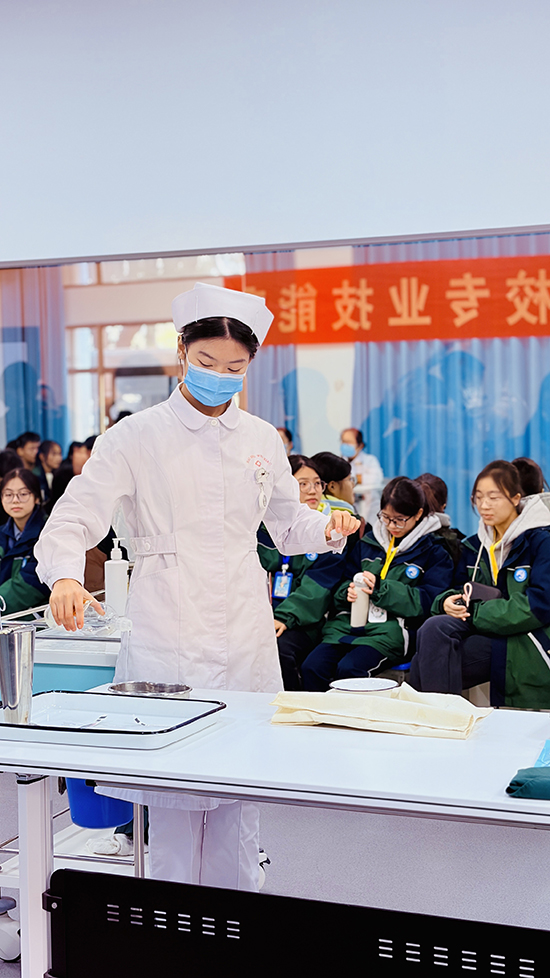 賽事覆蓋面廣、針對性強,全面涵蓋護理、藥學、醫技、公共四大專業領域,精心設置18個比賽項目。各項目緊扣專業核心素養與崗位實操需求,以賽促學、以賽促練,既考驗扎實的專業功底,更注重挖掘每位選手的獨特閃光點,真正踐行“人人出彩”的育人理念,全方位展現出海寧衛校學子昂揚向上的青春風采與精益求精的工匠精神。