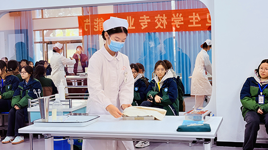 12月19日上午,海寧衛生學校第十四屆專業技能節總決賽在全校師生的熱切期盼中拉開帷幕。本屆技能節緊扣“人人出彩,讓每個孩子都被看見”的核心主題,延續深化校企協同育人,亮點紛呈、干貨滿滿。學校再度攜手浙江安晨醫藥公司、海寧康華醫院及靜安康復護理院,持續打造人才培養“新高地”,以多元賽場為載體,讓每位學子的專業潛能充分釋放,讓每一份努力都收獲認可,每一段成長都贏得喝彩。安晨醫藥公司作為我校長期合作的優質企業,在賽事組織上提供了堅實保障,為學生搭建起接軌行業、展示技能的實踐舞臺,彰顯了企業育人的責任擔當。