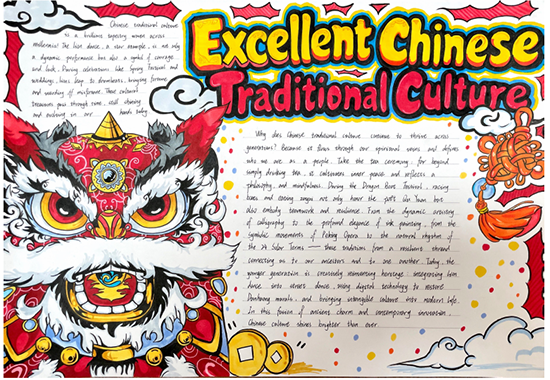 3.英語手抄報:以班級專業特色與中國優秀傳統文化為核心主題,圖文并茂繪就跨文化交流的青春畫卷,展現多元文化素養與創意審美;