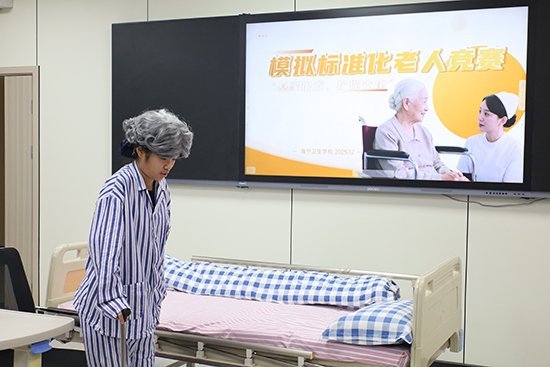 6.具象銀發·護您安康——模擬標準化老人:沉浸式代入角色,動作語言貼合 “左側肢體不便” 的身體狀況與性格特點,在模擬場景中錘煉精準照護能力,盡顯角色適配與服務素養。