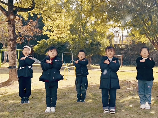 “鵝毛飛舞天地白,銀裝素裹抒情懷……”伴隨著輕快的音樂(lè),大班孩子們伸出小手,上演了一場(chǎng)生動(dòng)的節(jié)氣手勢(shì)舞。他們模仿雪花飄落、寒風(fēng)吹拂、堆雪人等動(dòng)作,表情靈動(dòng)、姿態(tài)整齊。手勢(shì)舞將大雪節(jié)氣的特點(diǎn)與肢體律動(dòng)巧妙結(jié)合,既鍛煉了孩子們的身體協(xié)調(diào)性與節(jié)奏感,又讓他們?cè)跉g快的氛圍中牢記節(jié)氣習(xí)俗,深切感受傳統(tǒng)文化的趣味性。