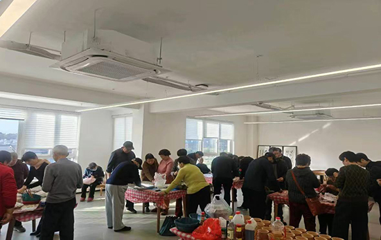 活動現(xiàn)場,三十八位“銀齡學員”早早齊聚,自發(fā)分工、默契協(xié)作。揉面的手腕有力,面團光滑筋道;搟皮的手法嫻熟,餃皮圓潤飛旋;包餡的巧思紛呈,元寶餃、柳葉餃在指尖誕生。大家互相教授褶紋技巧、交流餡料心得,案板方寸之間,洋溢的是技藝的切磋,更是鄰里的溫情。不一會兒,幾大盤形態(tài)各異、飽滿精致的餃子便整齊列隊,每一個都包裹著用心與喜悅。