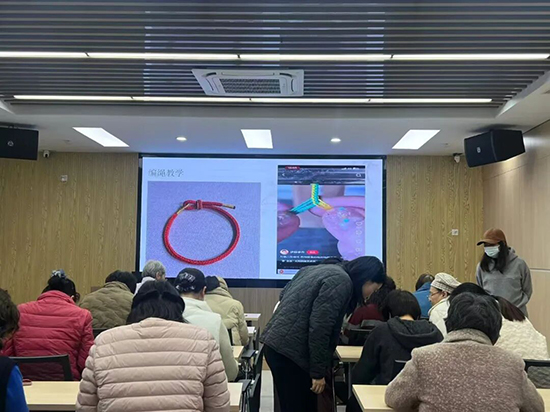 詩意彩繩翻飛,歡聲笑語盈盈。12月22日,濱江區(qū)社區(qū)學(xué)院長河分院月亮灣社區(qū)教學(xué)點活動室里,暖意融融,一場“巧手編紅繩 鄰里樂相聚”的活動在此開展,二十余位社區(qū)居民踴躍參與。