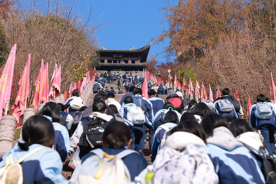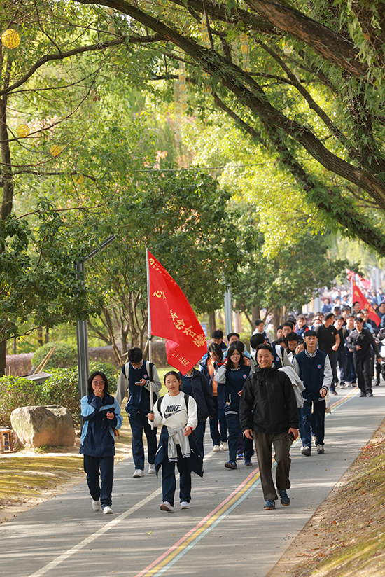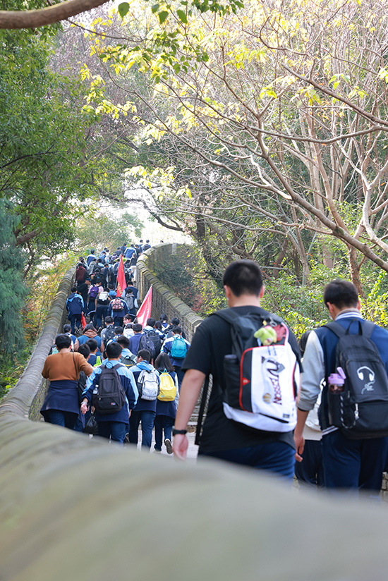 毅行,是奮斗的號(hào)角,是意志的淬煉,更是師生并肩、同窗攜手、彼此鼓舞的溫情旅程。隨著行程的推進(jìn),山風(fēng)漸漸變得凜冽,汗水濕透了同學(xué)們的衣背,疲憊如同潮水一般逐漸侵襲著每個(gè)人的身軀。然而,沒(méi)有一人輕言放棄。大家相互攙扶,彼此加油鼓勁。在這艱難的攀登過(guò)程中,師生之間、同學(xué)之間的情誼愈發(fā)深厚。大家始終堅(jiān)信:人生如行路,每一次咬牙堅(jiān)持,都會(huì)在下一個(gè)轉(zhuǎn)角迎來(lái)柳暗花明的風(fēng)景。