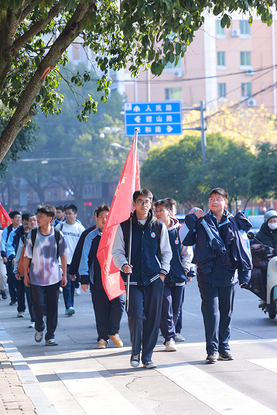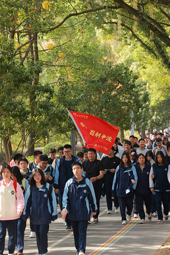 沿途,學(xué)校精心設(shè)置了五個(gè)打卡點(diǎn),分別為“揚(yáng)帆啟航”“志向高遠(yuǎn)”“思如泉涌”“筆下生輝”和“金榜題名”。這些打卡點(diǎn)不僅巧妙地串聯(lián)起了毅行的路線,更寓意著高三學(xué)子從立志、積累、突破到圓夢(mèng)的完整成長(zhǎng)軌跡。同學(xué)們?cè)诿總€(gè)打卡點(diǎn)都鄭重地蓋上印章,然后合影留念。那一張張青春洋溢的笑臉,在鏡頭前定格成永恒,他們將自己的理想與誓言鐫刻在了這場(chǎng)征程之上。