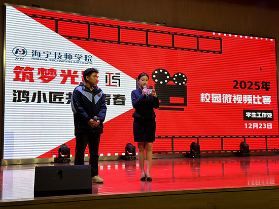 “筑夢光影”間綻放創(chuàng)意火花,二十部佳作詮釋多元校園風(fēng)采。2025年12月23日海寧技師學(xué)院2025年“筑夢光影,鴻小匠共繪青春”校園微視頻大賽在熱烈氛圍中圓滿落幕。全校各學(xué)院20支參賽隊(duì)伍齊聚賽場、同臺競技,同學(xué)們以創(chuàng)意鏡頭捕捉校園百態(tài),用鮮活畫面詮釋青春內(nèi)涵,為現(xiàn)場師生呈現(xiàn)了一場兼具思想深度、藝術(shù)質(zhì)感與觀賞價(jià)值的視聽盛宴。
