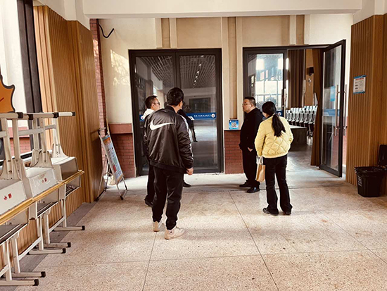 在楓橋鎮中心學校副書記兼楓橋鎮初級中學校長楊立波、副校長戴燁、安管主任湯鋼锜的陪同下,調研組實地踏看校園,重點圍繞校園安全網格員制度落實情況展開問詢,詳細了解安全隱患上報、處置、解決的全流程機制。楊立波、戴燁結合學校工作實際,逐一進行匯報解答。徐志洪強調,要充分發揮校園安全網格員的職能作用,明確崗位職責、細化工作舉措,切實做到隱患排查不留死角、問題整改及時到位,筑牢校園安全防線。